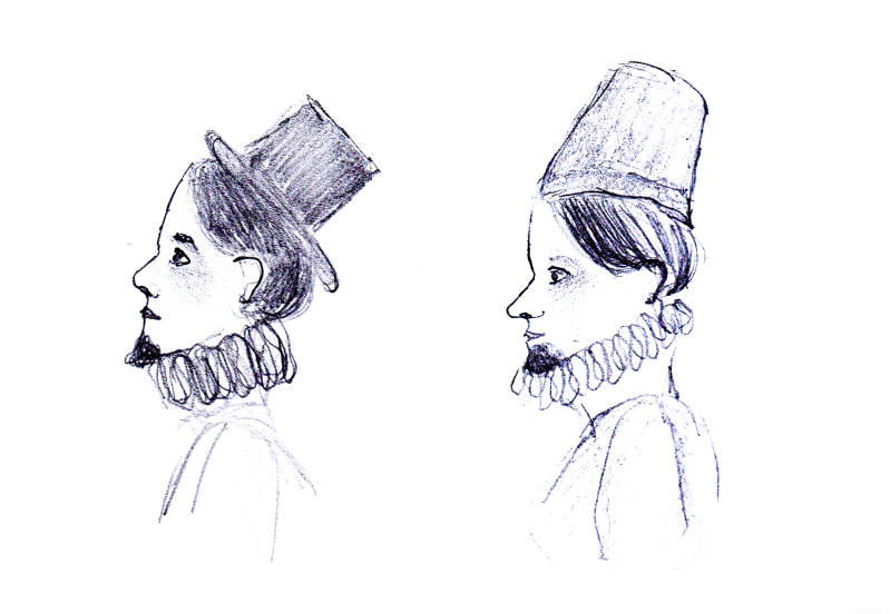 Hier zijn enkele tekeningen en foto's van de kleding van mensen uit de 16de eeuw: